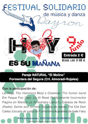 El próximo sábado 9 de junio EmPegueFoc participará en el "Festival solidario de música y danza por ayuda a Dayron", que se celebrará en el Paraje Natural "El Molino" (Googel Maps) de Formentera del Segura.